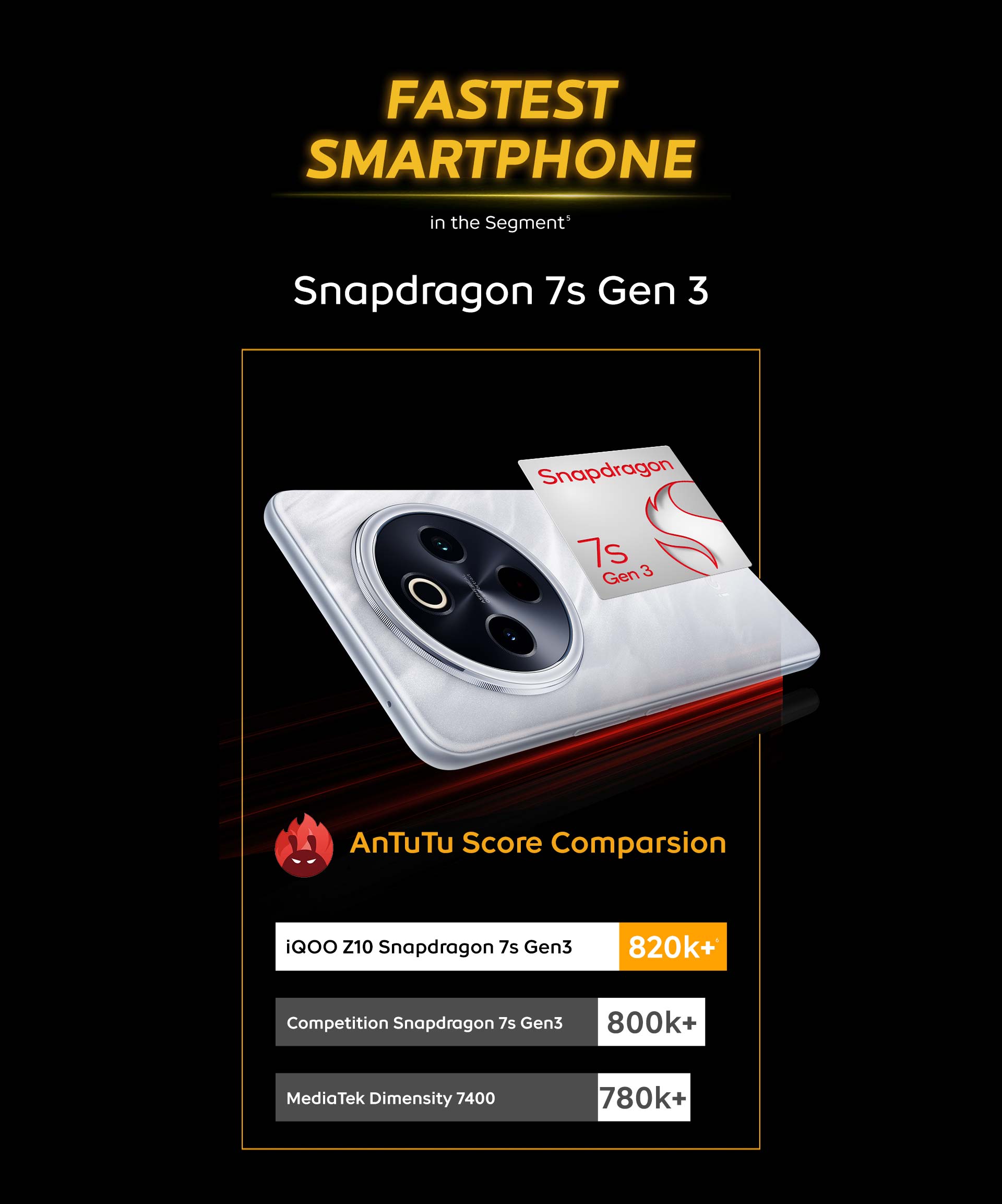 - Snapdragon 7s Gen 3 ( Segment’s fastest processor)